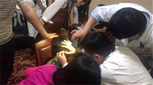 会议结束后,家长们开始面诊。医生近距离的接触孩子,了解到孩子的基本身体状况,观察孩子的耳朵基础情况,给予了适合的手术方式、方案及建议。